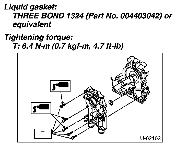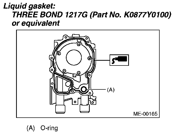 ^ Do not allow liquid gasket to jut into O-ring grooves, oil passages, bearing grooves, etc.