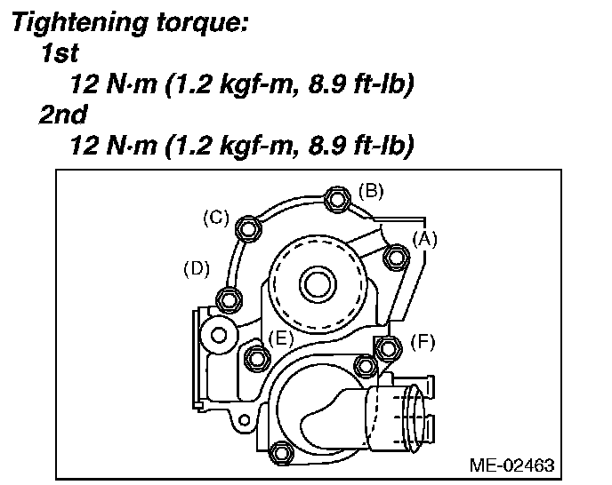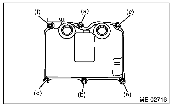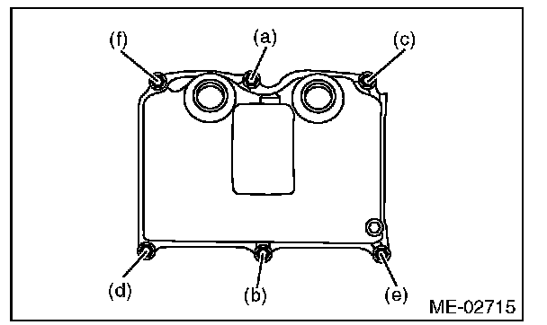 2) Temporarily tighten the rocker cover bolts in alphabetical order shown in the figure, and then tighten to specified torque in alphabetical order in two steps.