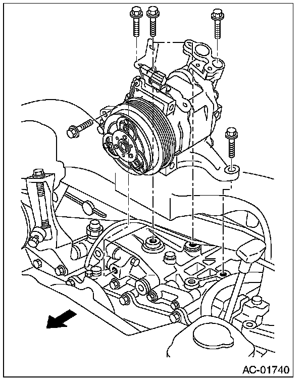 NOTE: Since the compressor cannot be removed by itself, remove the compressor bracket as a unit.
