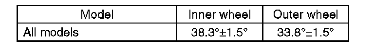 1) Check that the left and right wheel steering angles are within specification.