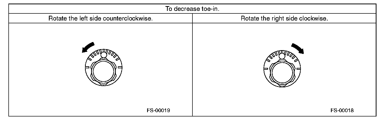 2) When one rear wheel is adjusted in a toe-in direction, adjust the other rear wheel equally in toe out direction, in order to make the thrust angle adjustment.