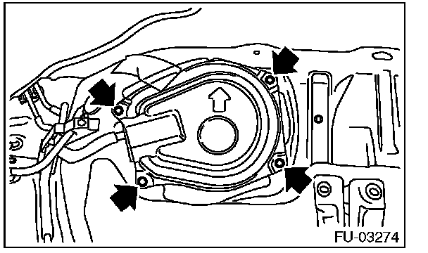 9. Remove the bolts and nuts which secure fuel sub level sensor protector and fuel sub level sensor upper plate to the fuel tank.