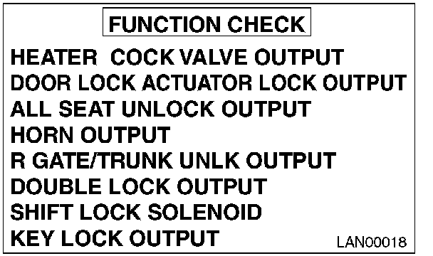 NOTE: In order to check the body integrated unit function, inspect the body integrated unit and actuator using Subaru Select Monitor without operating switches.