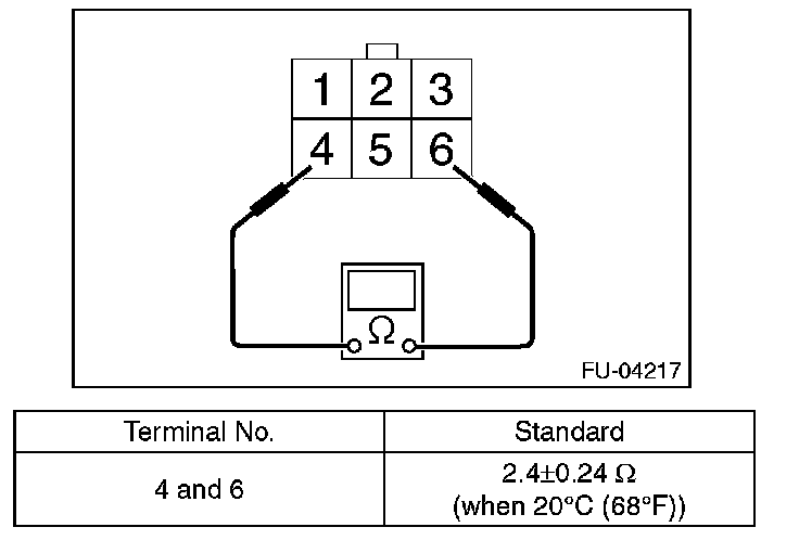 Measure the resistance between front oxygen (A/F) sensor terminals.