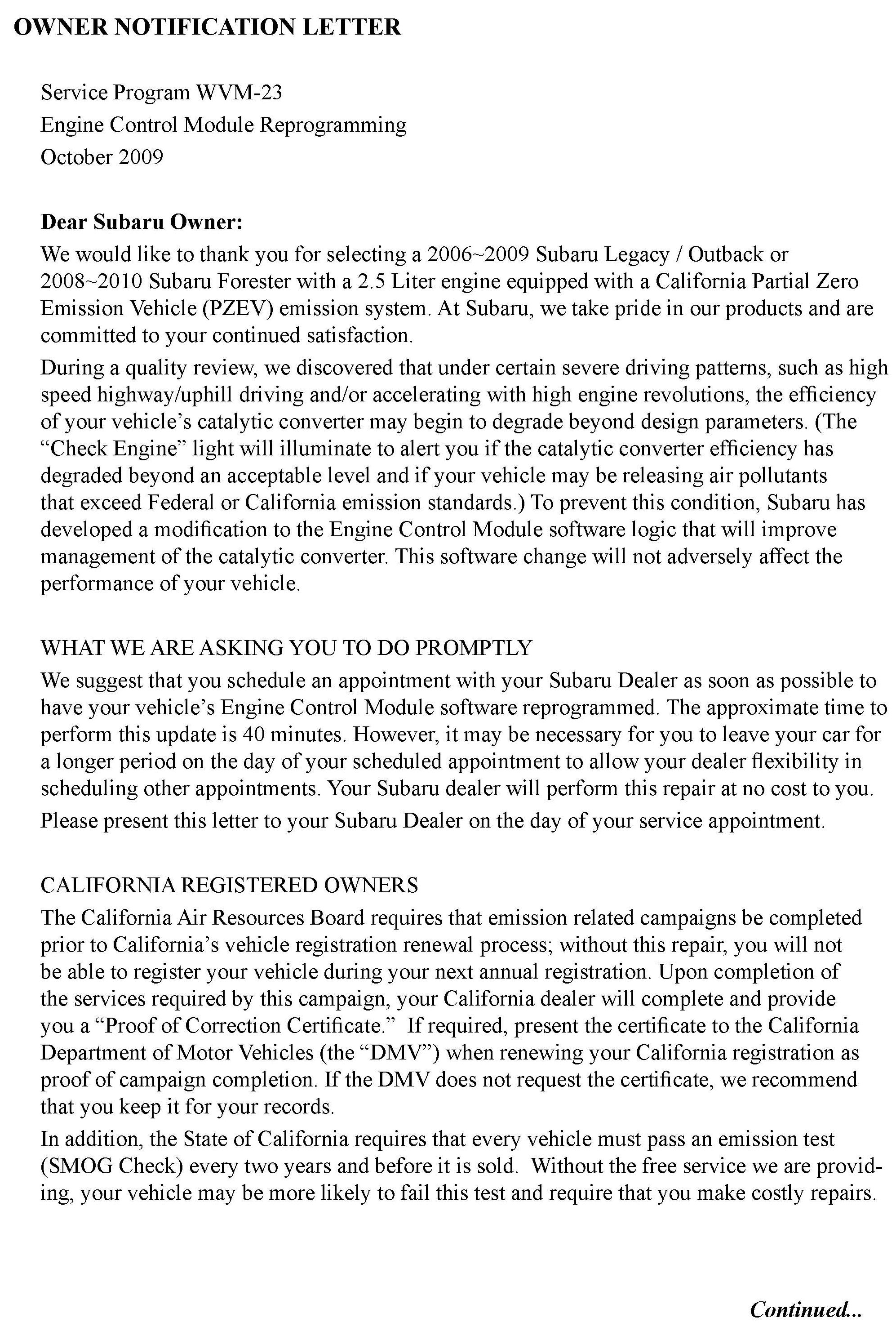 Campaign - ECM Software Update For Catalyst Efficiency