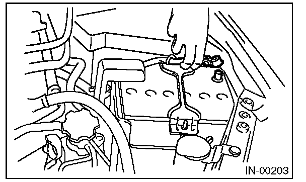 3) Remove the bolt, and disconnect the engine harness connector from the bulkhead harness connector and rear engine hanger.