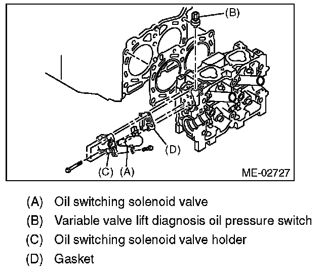 9) Remove the oil switching solenoid valve holder from the cylinder head.