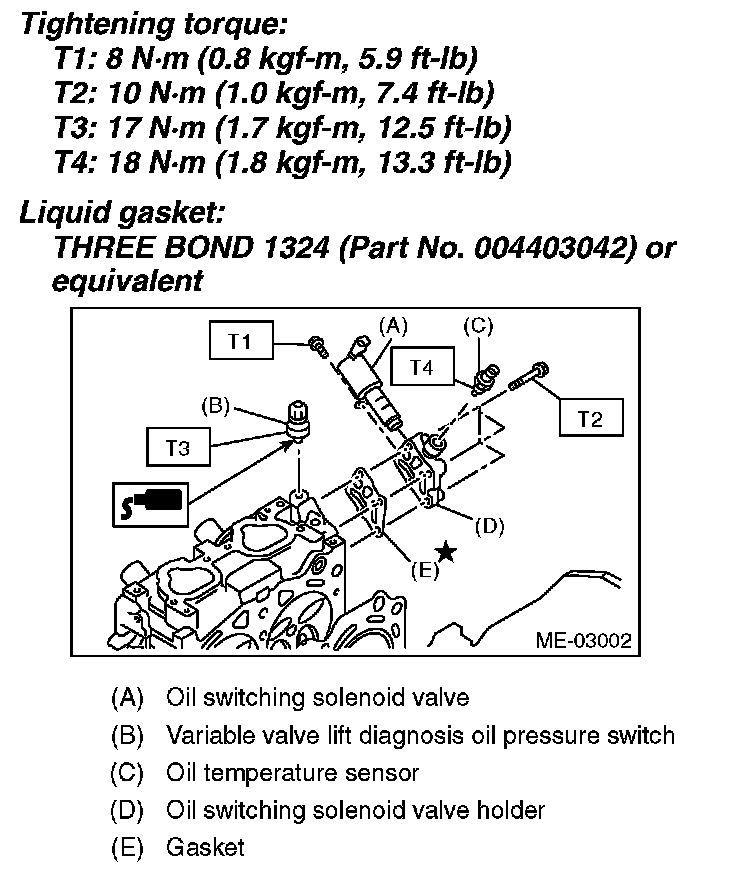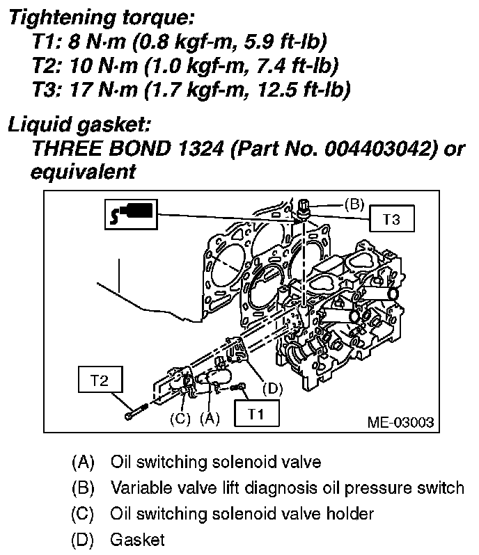 ^ Apply liquid gasket to variable valve lift diagnosis oil pressure switch threads.