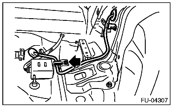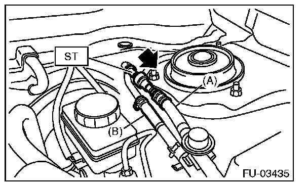 1. Disconnect the quick connector of the fuel delivery hose (A) by pushing the ST in the direction of the arrow.
