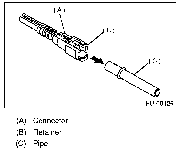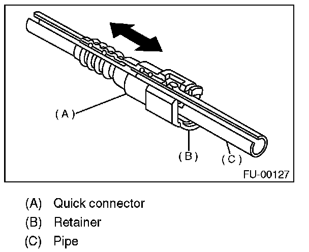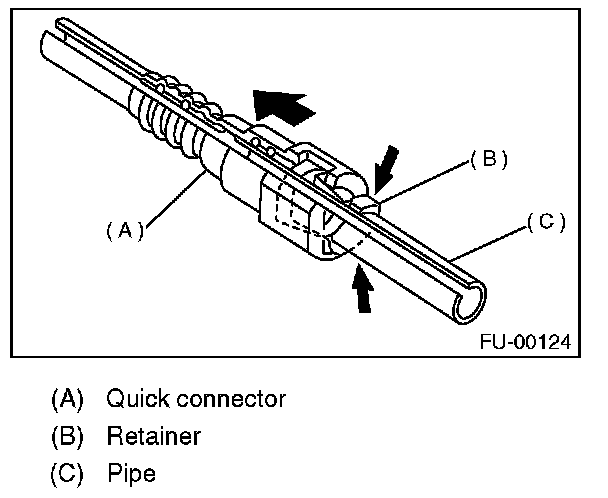 1. Push the retainer in the direction of the arrow, disconnect the quick connector from pipe.