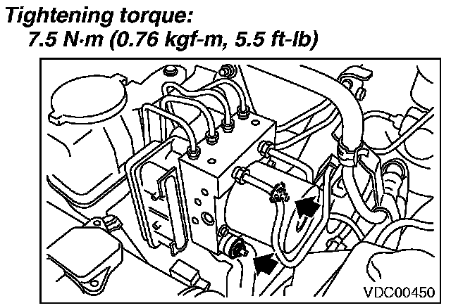 2) To prevent entry of foreign objects and brake fluid leakage, plug the oil pressure port of the VDCCM&H/U using a screw plug, etc.