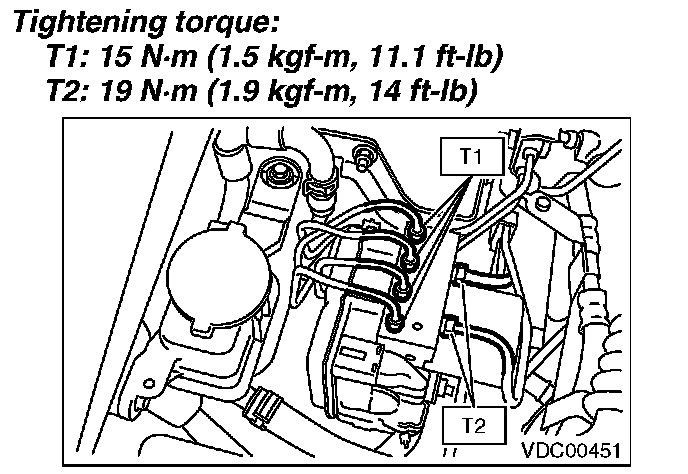 4) Disconnect the brake pipes from the VDCCM&H/U.