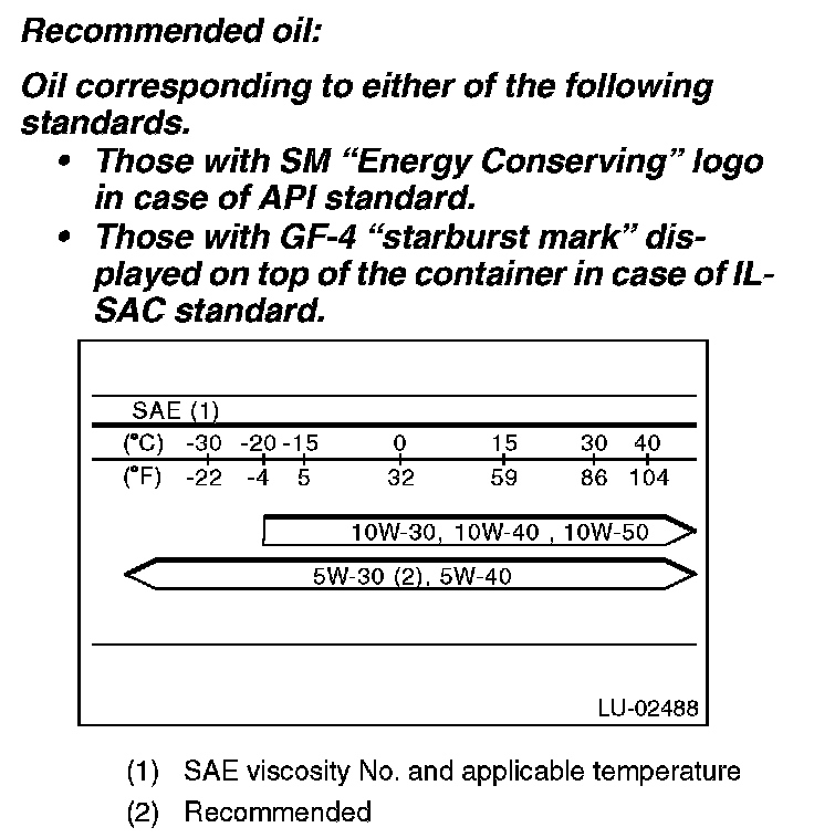 ^ If the vehicle is used in regions of high temperatures or in other severe environments, use oil with the viscosities shown below.