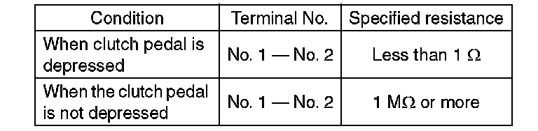 2) Check the clutch switch for continuity. If the resistance is not at the standard value, replace the switch.