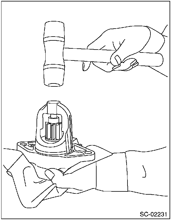 1. Using a plastic hammer, remove the stopper from snap ring by lightly tapping the stopper with an appropriate tool (such as a fit socket wrench).