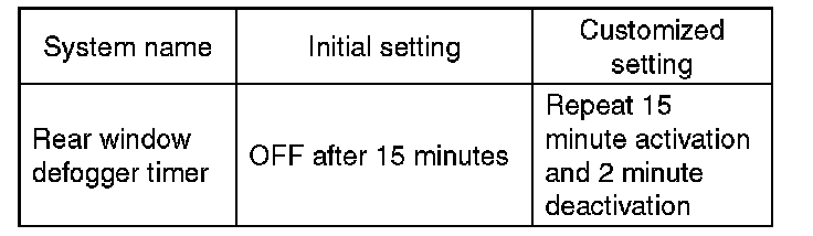 NOTE: The rear window defogger system can be customized by using the Subaru Select Monitor.