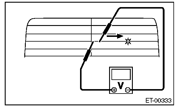 8. Slowly move the negative (-) tester probe along the heat wire. While moving the tester probe, find an open point where the voltage reading changes from 0.