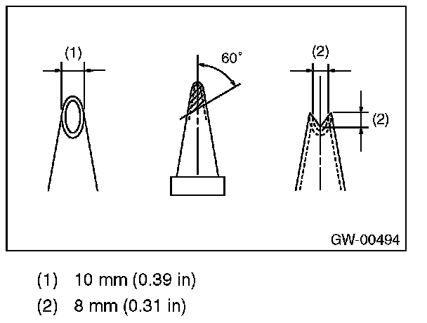 1. Cut the cartridge nozzle tip as shown in the figure, and set the adhesive in the sealant gun.