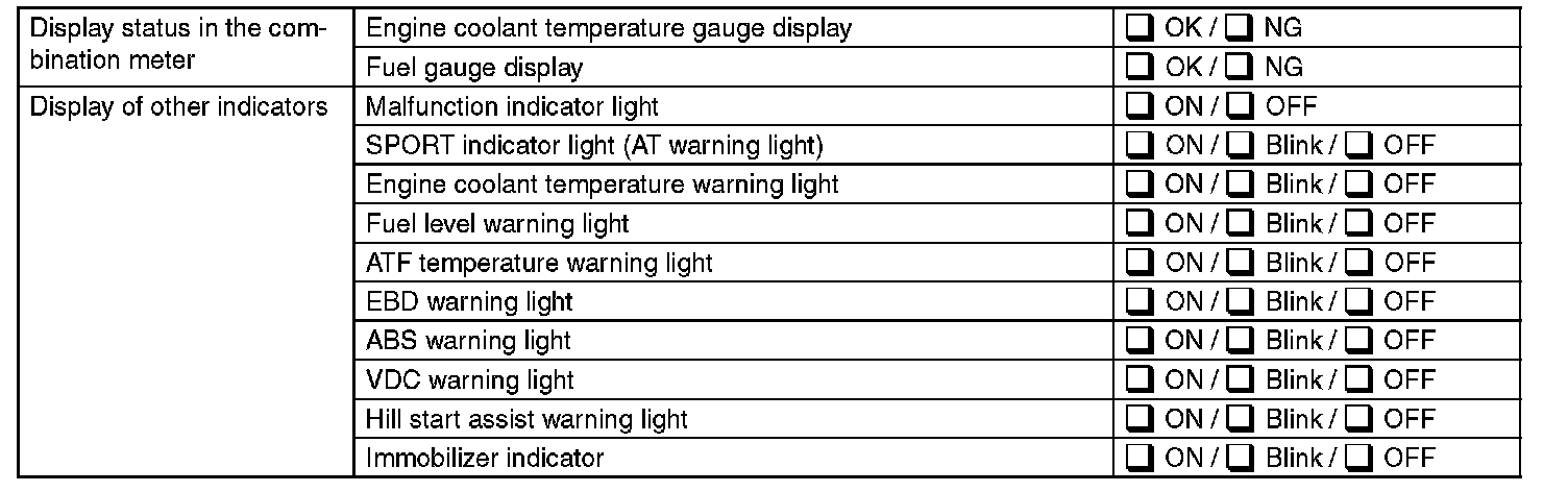 DISPLAY STATUS IN THE COMBINATION METER