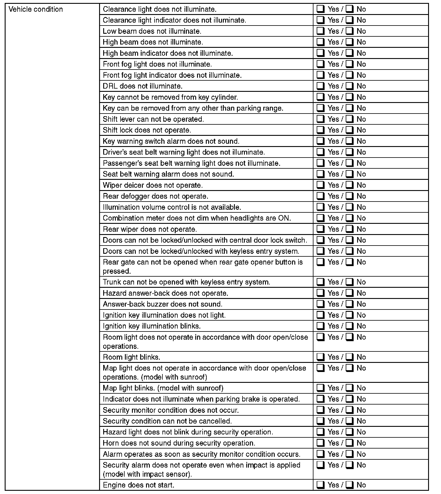 Inspect the following item about the vehicle's state.