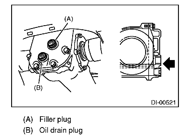 1) Remove the filler plug, and then check the gear oil. Replace the gear oil if it is contaminated or deteriorated.