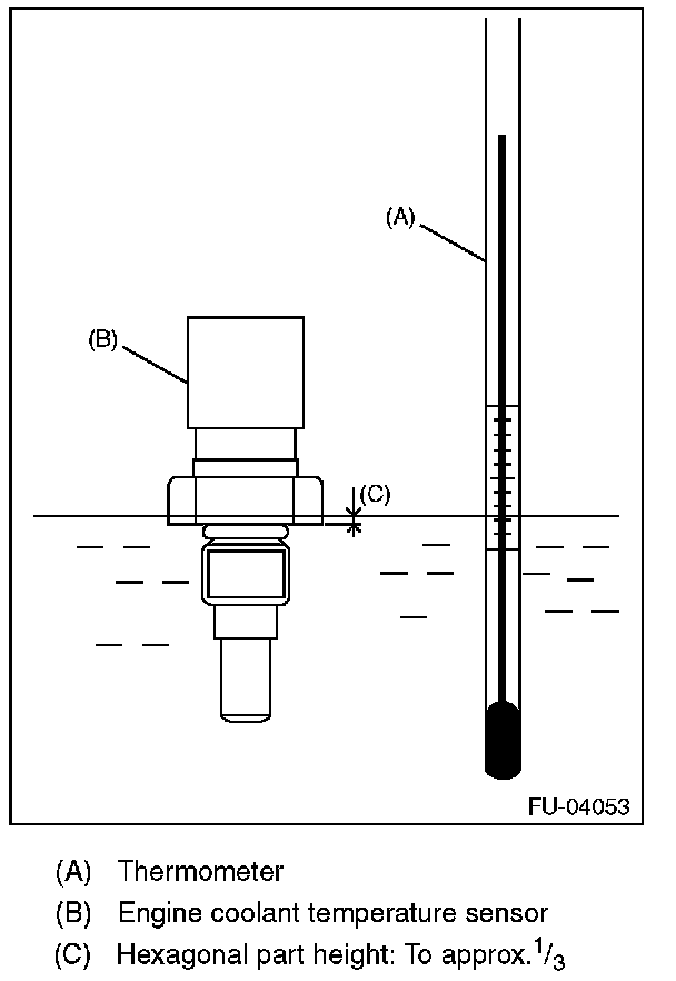 1. Immerse the engine coolant temperature sensor and a thermometer in water.