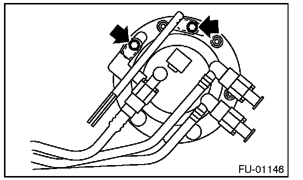 9. Remove the bolts and nuts which hold fuel sub level sensor to the fuel tank.