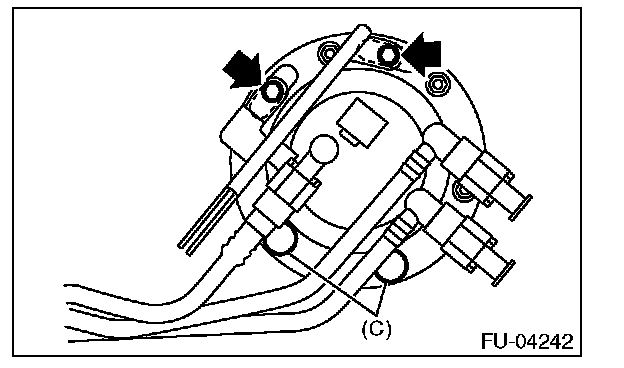 - After Tightening, install the rubber cap (C) shown in the figure.