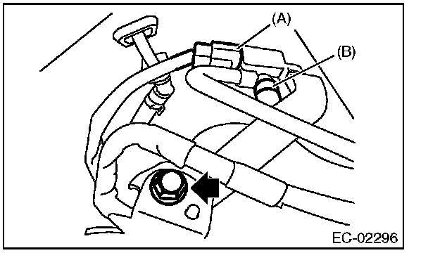 6. Disconnect the pressure hose from the fuel tank pressure sensor (B).