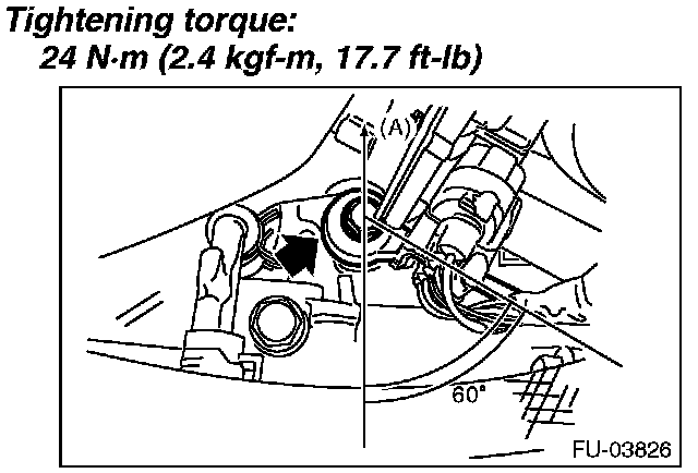 NOTE: The portion of the knock sensor cord that is pulled out must be positioned at a 60° angle relative to the engine rear.