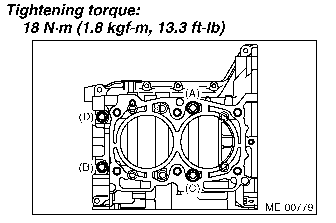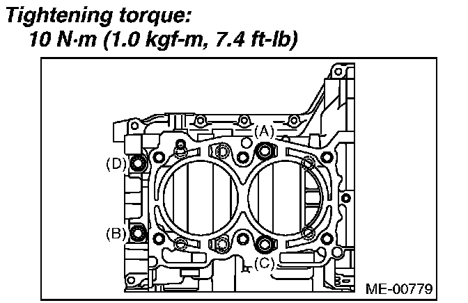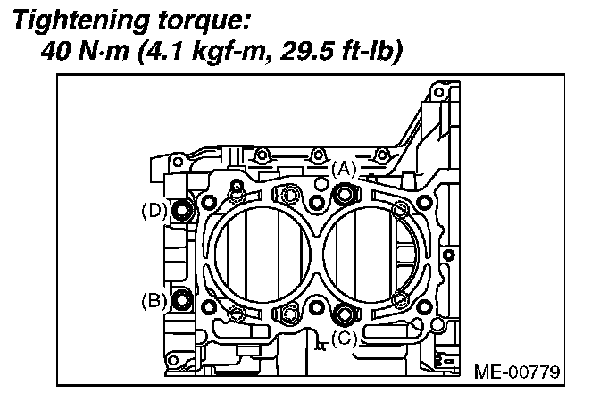 Tighten the LH side cylinder block connecting bolts (A - D) further in alphabetical order