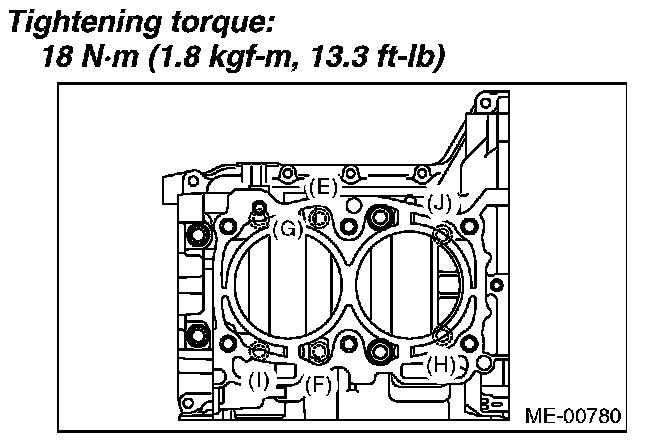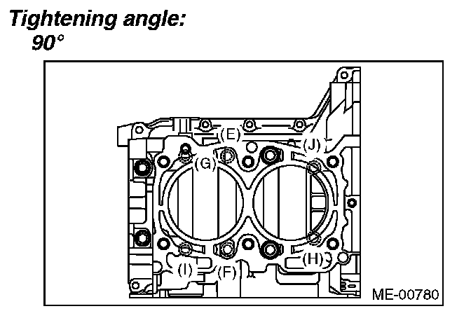 Tighten the RH side cylinder block connecting bolts (E - J) further in alphabetical order