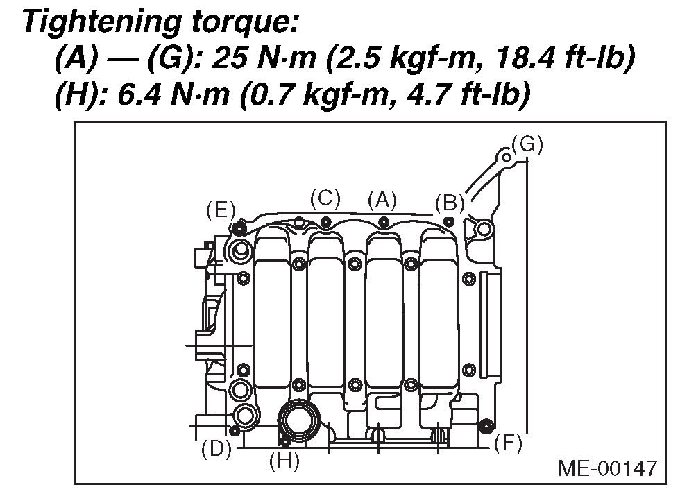 Tighten the 8 mm and 6 mm cylinder block connecting bolts on the LH side (A - H) in alphabetical order