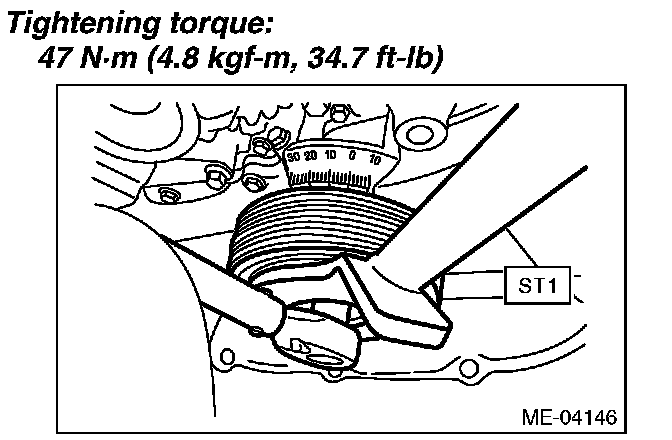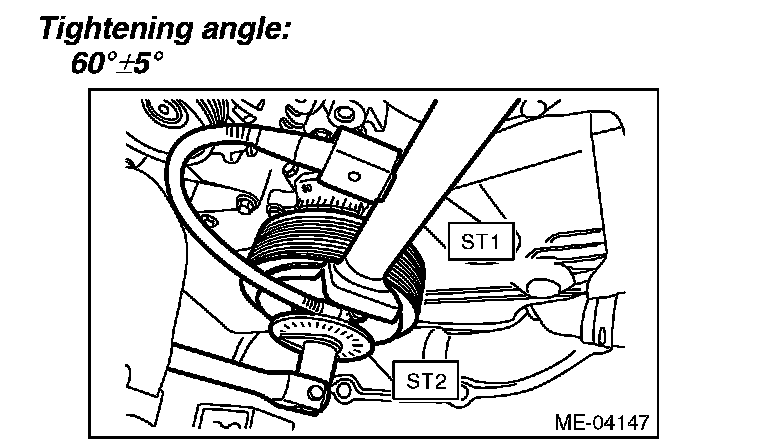 Tighten the crank pulley bolt to the specified angle