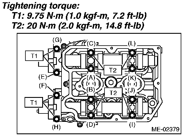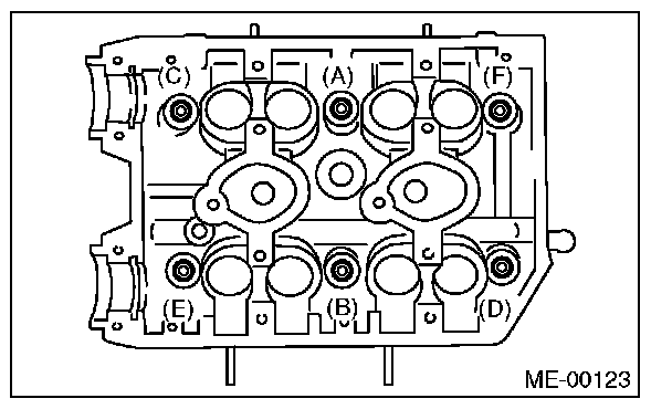 Gradually tighten the camshaft cap in at least two steps, in alphabetical order shown in the figure, and then tighten to the specified torque.