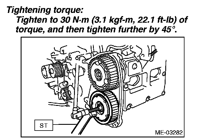 Retighten all bolts 95 N.m (9.7 kgf-m, 70.1 ft-lb)