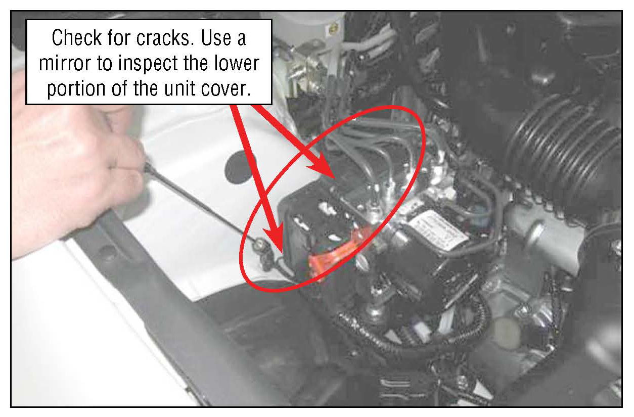 This service program will involve inspecting the ABS electronic control unit plastic cover for cracks.