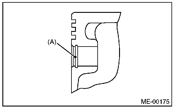 4) Check the snap ring installation groove (A) on the piston for burr. If necessary, remove burr from the groove so that the piston pin can lightly move.