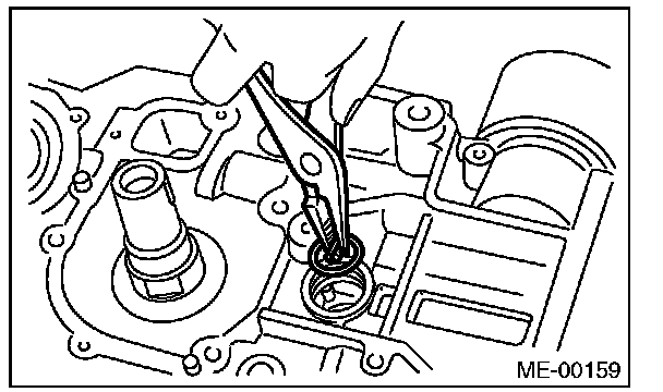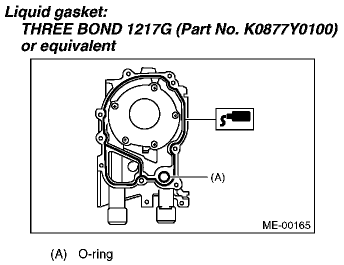 ^ Do not allow liquid gasket to jut into O-ring grooves, oil passages, bearing grooves, etc.