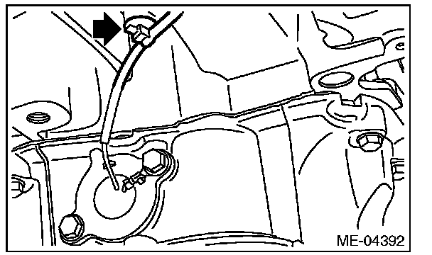 27) Secure the oil level switch harness to the cylinder block with clip.