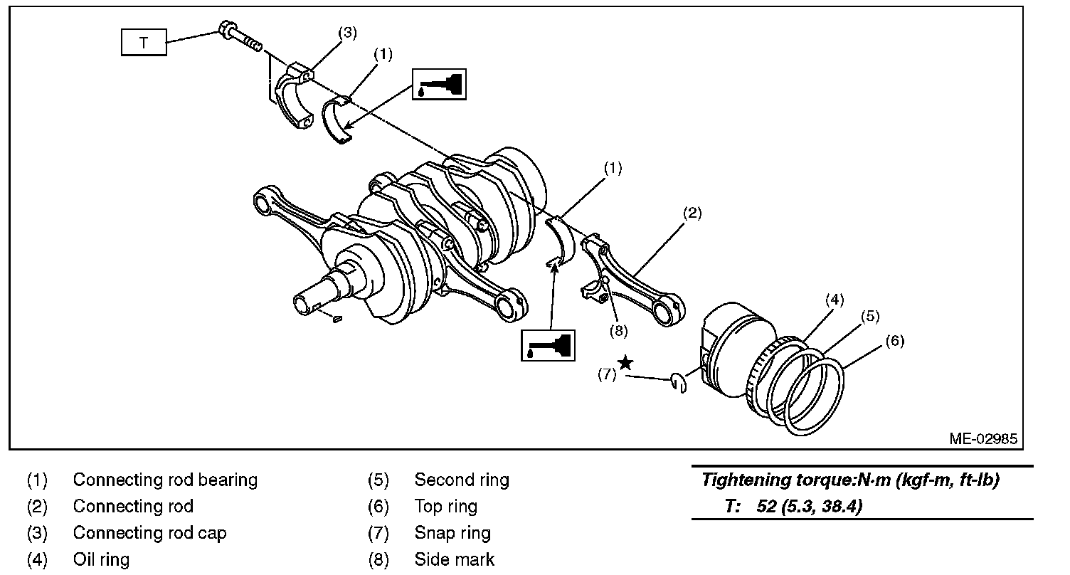 ^ Each connecting rod has its own mating cap. Make sure that they are assembled correctly by checking their matching number.
