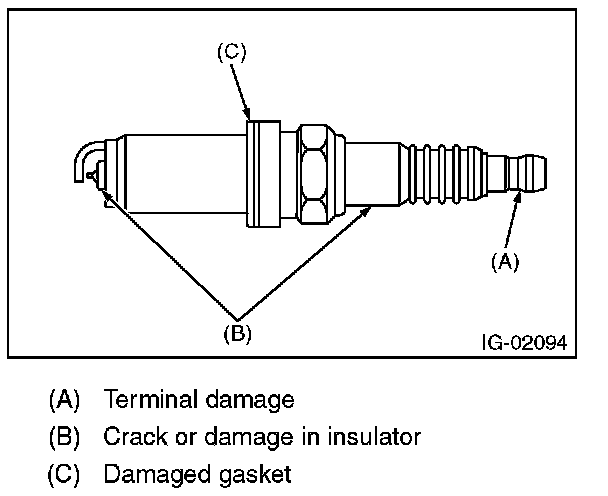 2. Check the spark plug electrode and condition of the insulator. If abnormal, check and repair the cause and replace the spark plug.