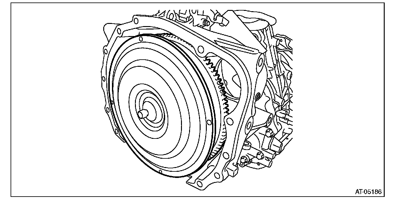 2) While holding the torque converter assembly by hand, carefully install it into the torque converter case.
