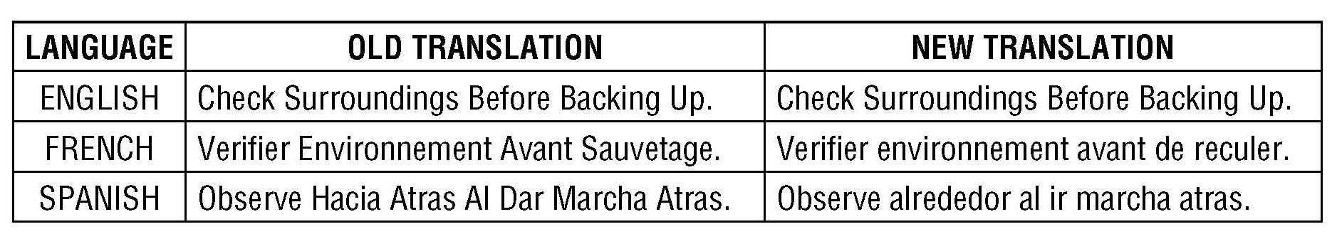 ^ Mis-translation of "Check surroundings before backing up" on the back-up monitor screen. (Models with back-up camera).