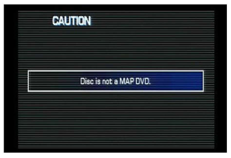 Because there is no map data included on the update disc, the CAUTION below is displayed. The map screen is displayed when you insert the Map disc after removing the Update disc (after the next step).