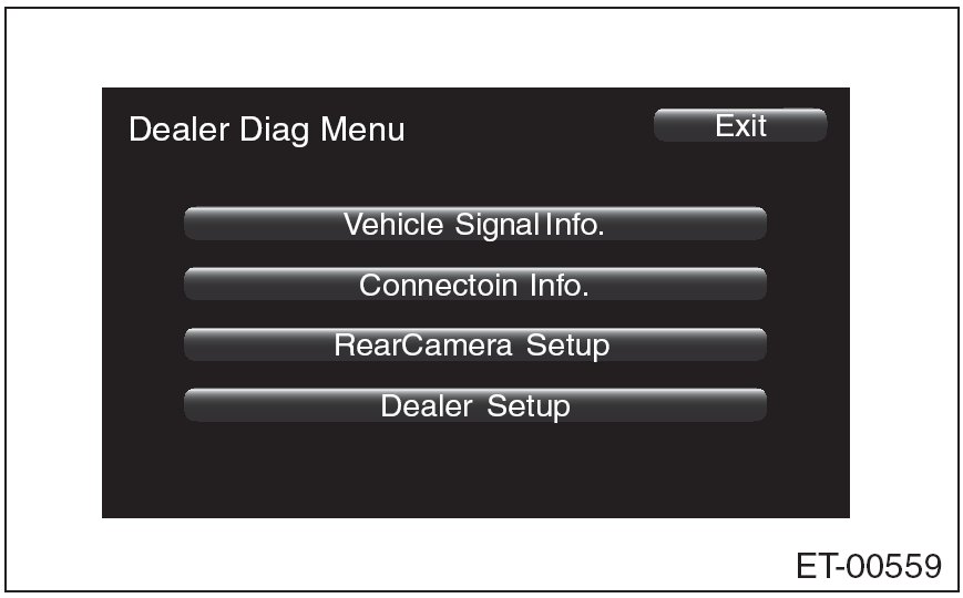 1. Touch {Vehicle Signal Info.} on the {{Dealer Diag Menu}} screen.