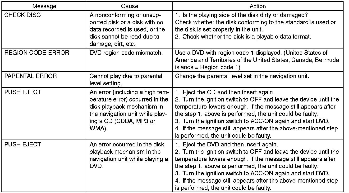 NG: If DVD images are not displayed, check the following points. If no problems are found, the navigation unit is faulty.