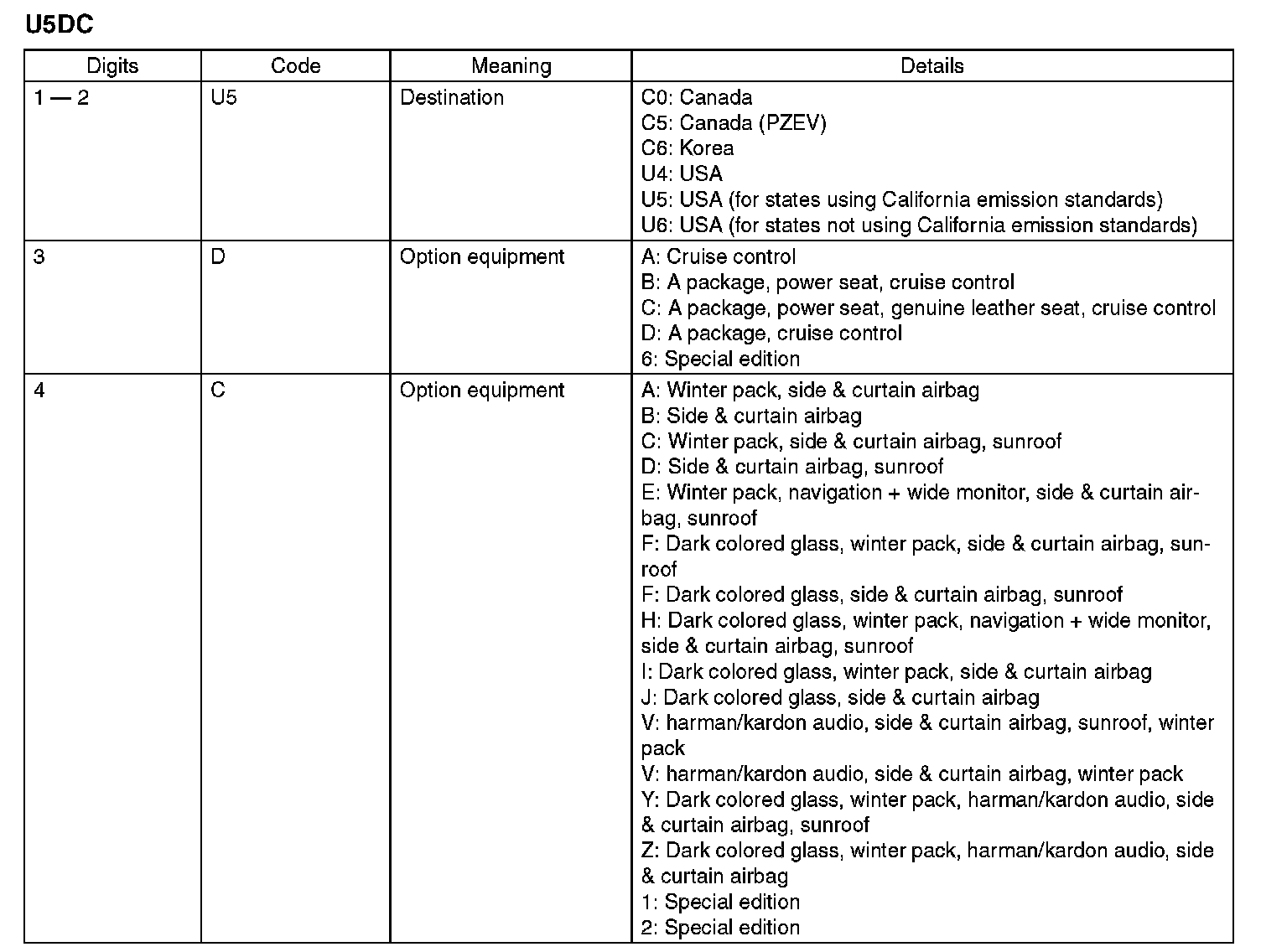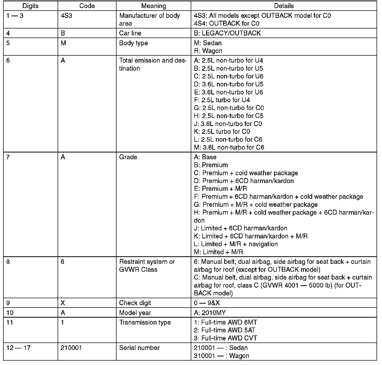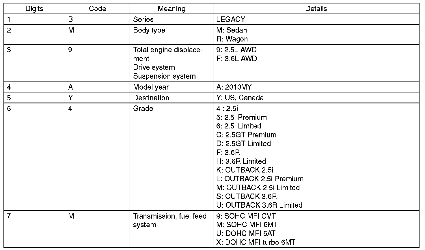 The meaning of the V.I.N. is as follows: