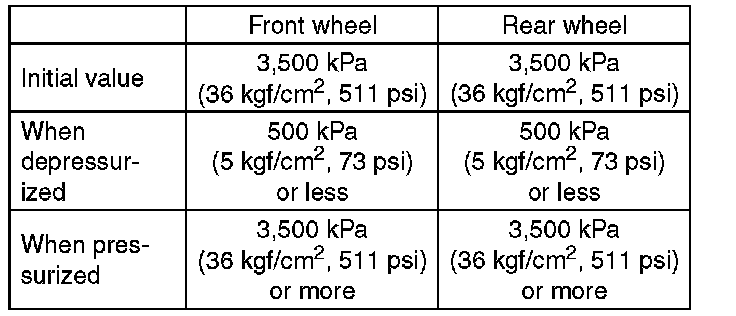 7) Read values indicated on the pressure gauge and check if the fluctuation of the values between decompression and compression meets specification. Depress the brake pedal and check that it is not abnormally hard, and tightness is normal.