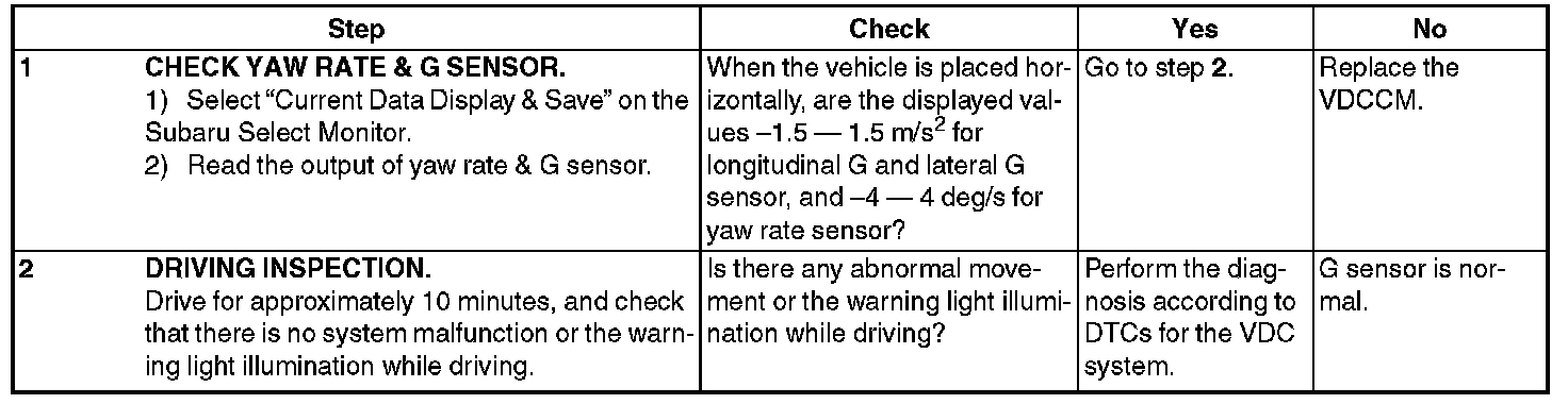 YAW RATE & LONGITUDINAL G AND LATERAL G SENSOR SIGNAL